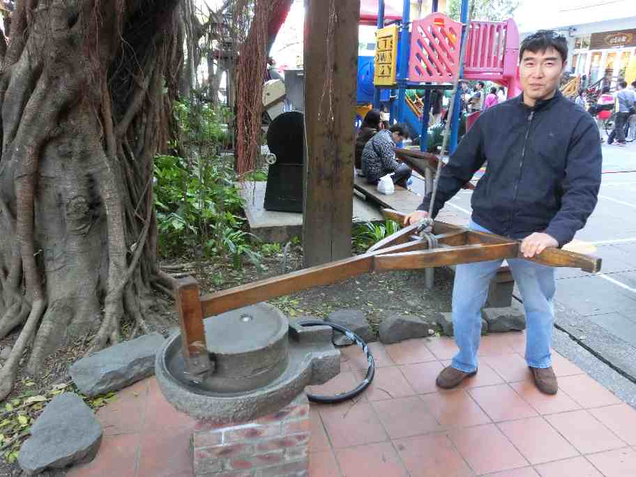 We didnt bring enough cash for lunch, so Henry needs to grind some beans to help pay for lunch
