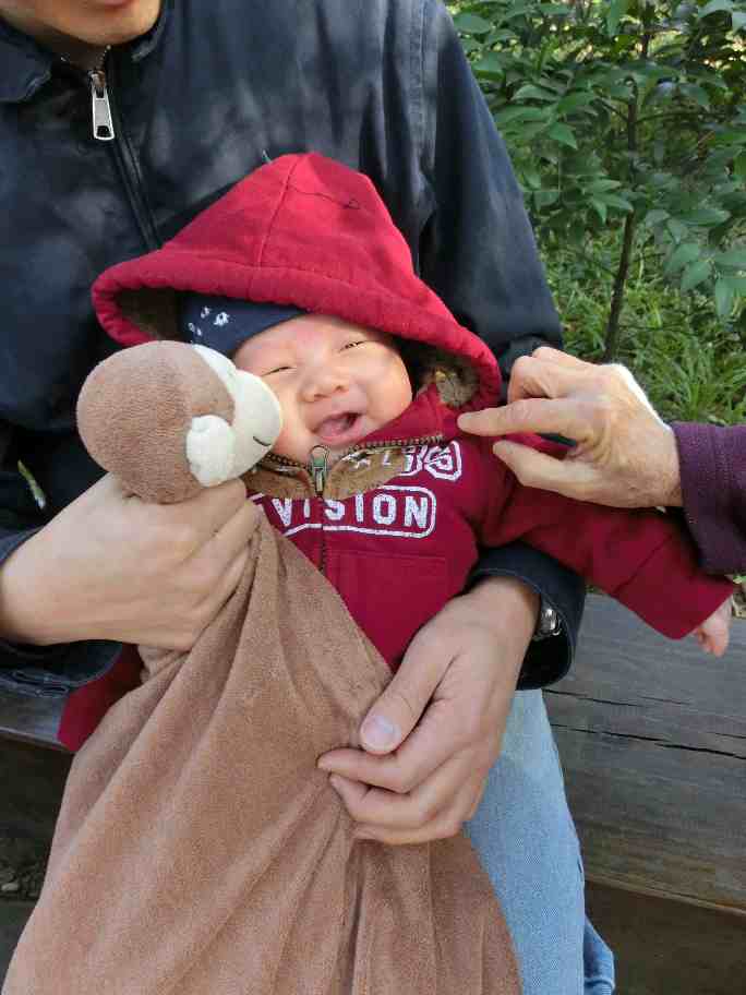 We planned to go hiking with Ethan last Sunday since it was forecast to be warm and sunny.  Although the forecast was accurate, we forgot to consider the wind factor.  As we got out from the car and walking towards the trail head, the wind was blasting so hard that we were concern of Ethan.   So instead of doing some exercise, our minds were aiming for lunch.  We went home, changed and went out for lunch.